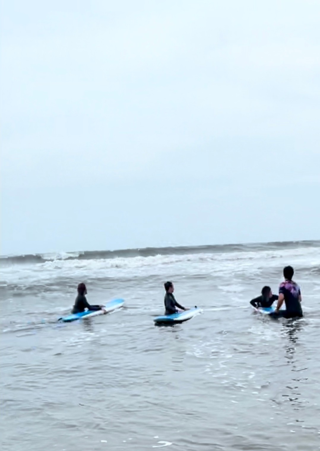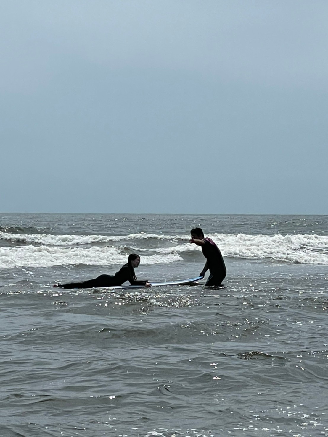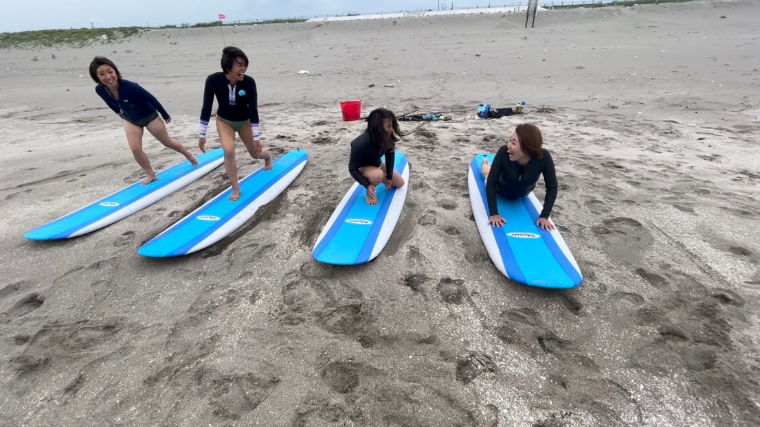 初めての方から少しサーフィン経験、サーフィンブランクのある方までが対象で安全な波打ち際 腰くらいの深さからのサーフィン体験のコースです。